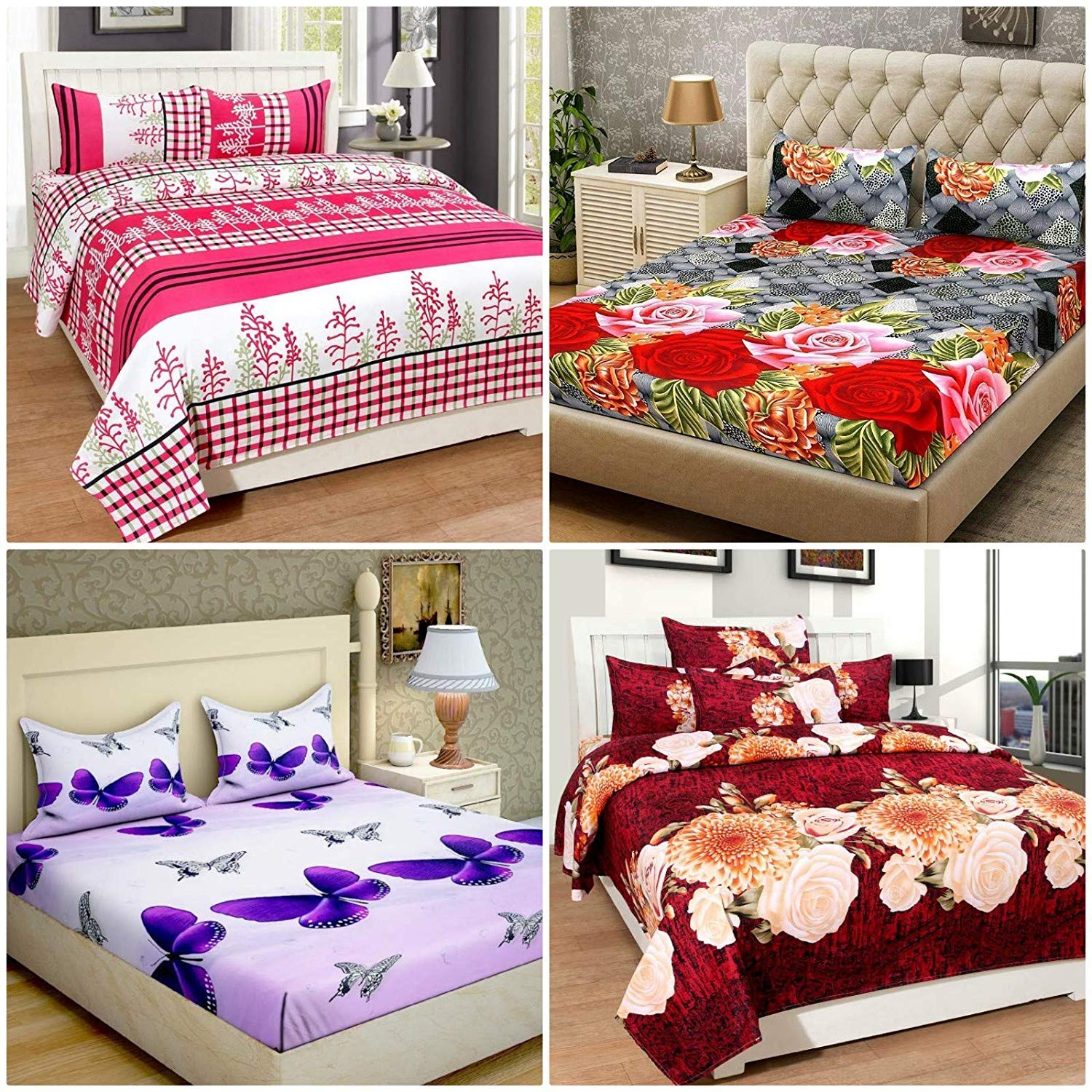 Shantnu Home Decor By Floral Design Print Cotton King Size Double Bedsheet With 8 Pillow Covers Multi Colour Combo Of 4 Amazon In Home Kitchen