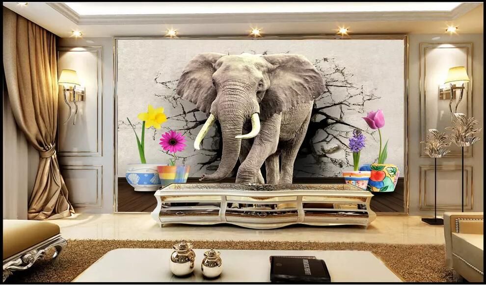 Wdbh 3d Wallpaper Custom Photo Elephant Broken Wall Wooden Floor Flower Pot Home Decor Living Room 3d Wall Murals Wallpaper For Walls 3 D From Shu120806 12 87 Dhgate Com
